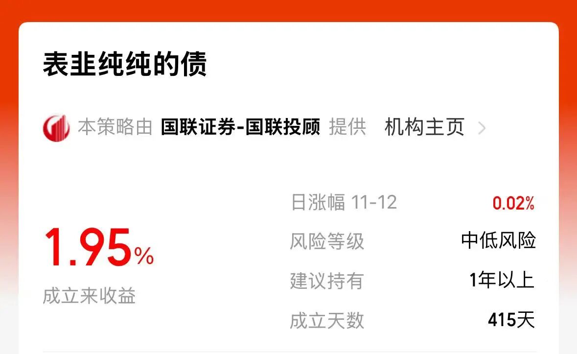 #晒抱蛋收益##债基朋友圈##11月基金投资策略##黄金又牛起来了!这次你上车了吗?##多重利好催化!新能源走强##段永平:投资茅台不需要太看宏观环境##段永平:投资茅台不需要太看宏观环境##科技小登大揭秘##科技热点摊开业啦##4000点 到底要不要止盈?##特斯拉拟建新厂生产Optimus人形机器人##消费赛道复苏预期升温!该如何布局?##“炒名字”又来?合富中国盘中十连板##四季度看好科技吗##美联储再次降息!12月降息与否难料##A股突破4000点!下个目标位在哪?##国际资本看好中国资产#