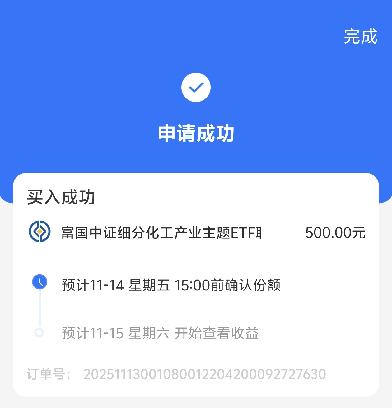 $富国中证细分化工产业主题ETF发起式联接C$ +500元,基金目前估值上涨了3.39%,近近期表现的也是非常的优秀。近三个月上涨了20.21%,近6个月上涨了33.45%,盈利能力强,各阶段业绩在同类基金排名领先,收益率远超同类平均。基金上涨弹性大,爆发力强。目前随着供给端持续优化,推动格局与价格的上涨,海内外需求共振,拉动多领域盈利修复。目前的估值仍处于低位配置,性价比凸显。长期持有,投资回报率高,期待后期收益。