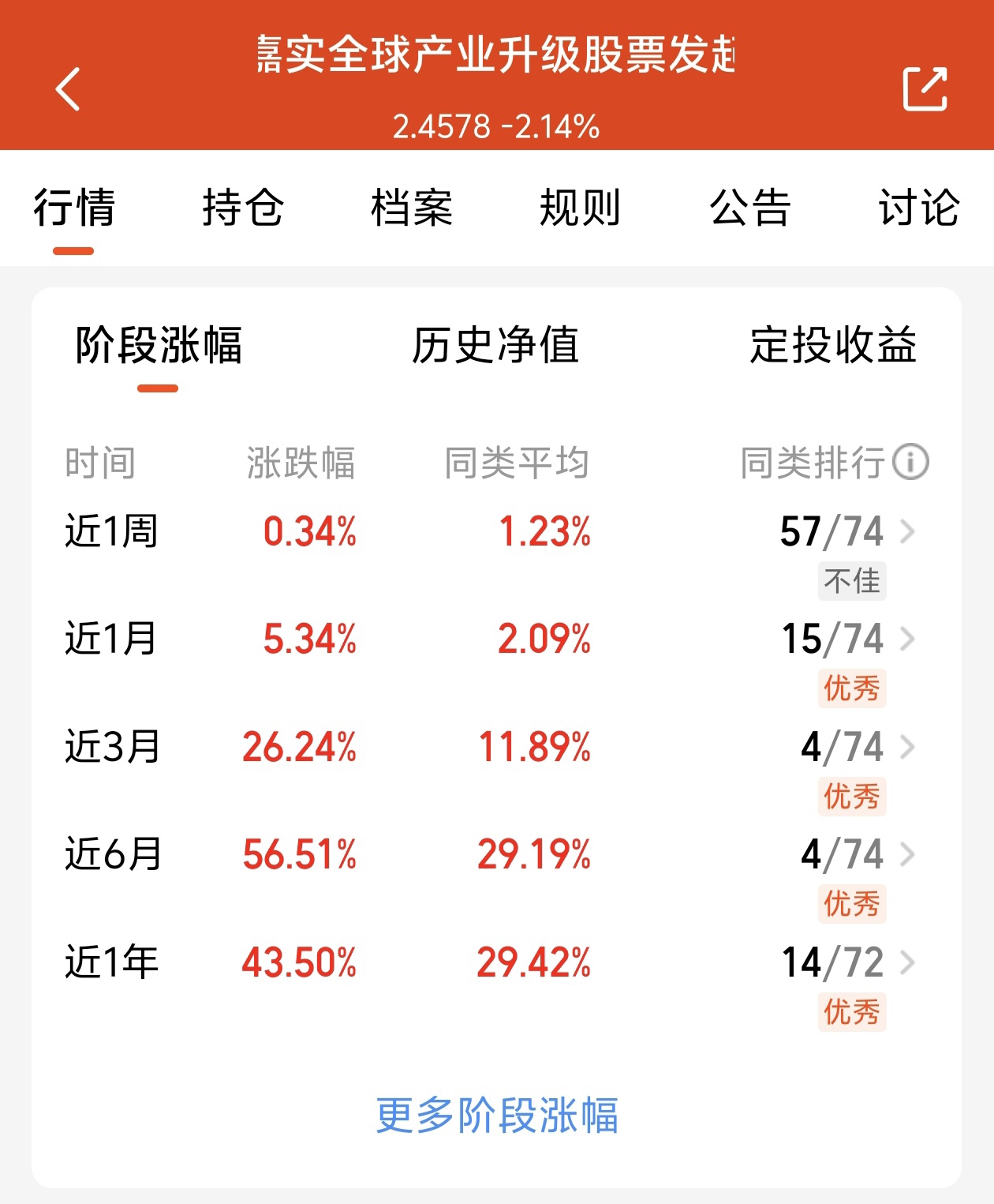 太强了呀,朋友们,最近的行情也在一路上涨中,表现的也是非常的不错,收益率高。$嘉实全球产业升级股票发起式(QDII)C$ 近三个月上涨了26.24%,近一年的收益率过高达43.5%。市场对 AI 技术狂热不减,生成式 AI 与智能体算力需求激增,相关科技企业创收前景愈发乐观。