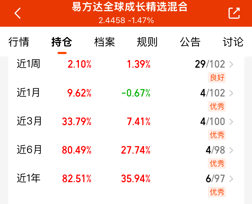 今天股市迎来一波反弹,市场交易情绪火热,个股多数上涨,不过,从大趋势来看,随着降息周期的开启,大大利好全球科技行情,比如美股、机器人、Al优势明显,其中易方达全球成长精选近一年涨幅86.30%,表现不错!#沪指上扬,续刷10年新高!#