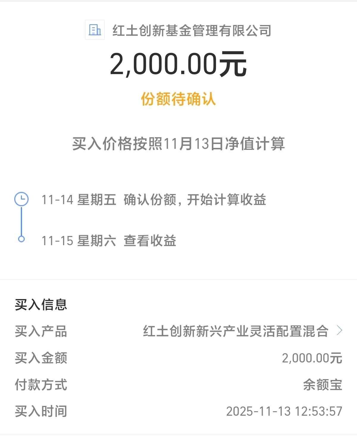 CPO板块近期连续回调,昨日低开高走显韧性,今天再次回踩60日均线。这个位置支撑力度很强,上次跌破还是5个月前,随后就走出一波强势反弹, 今天我选择继续布局CPO方向,加仓红土创新新 兴产业灵活配置混合2000元,这只基重点配置CPO、消费电子和半导体,前十大持仓包括中际旭创、寒武纪、工业富联等硬核企业,都是各细分领域龙头,在AI算力需求持续爆发的背景下,光模块作为基础设施核心环节,长期逻辑依然坚实。当前位置性价比较高。