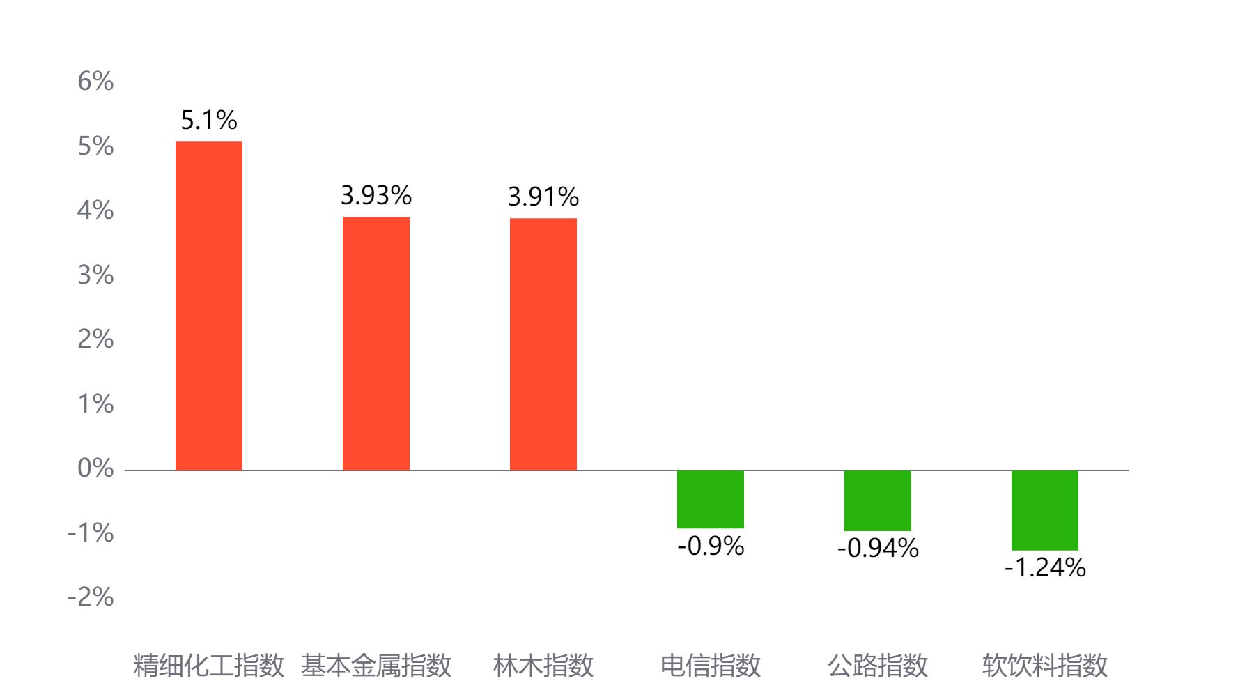 今天表现最好的主题概念依次为精细化工、基本金属、林木,表现最差的依次为电信、公路、软饮料。