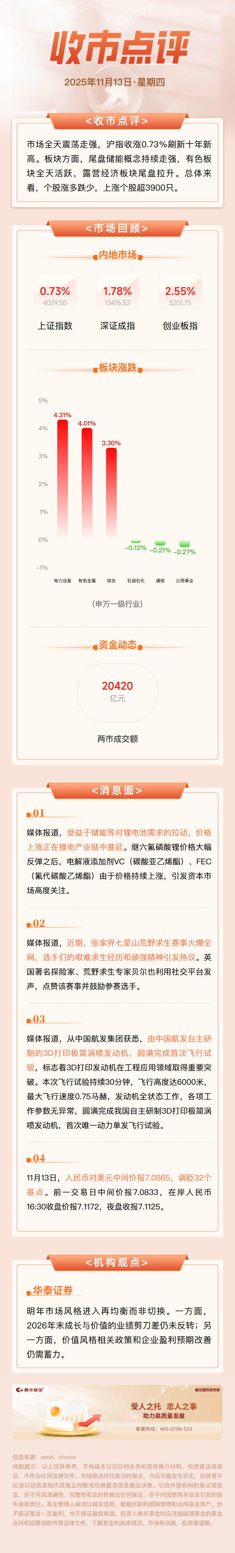 收市点评11.13 沪指刷新十年新高 电池产业链爆发