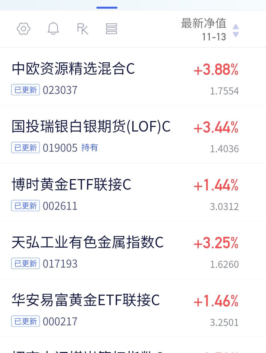$天弘工业有色金属指数C$ 涨幅3.25%