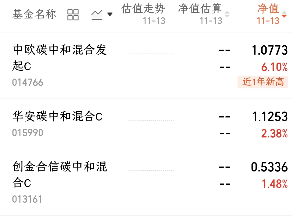 $中欧碳中和混合发起C(OTCFUND|014766)$今日上涨6.1%