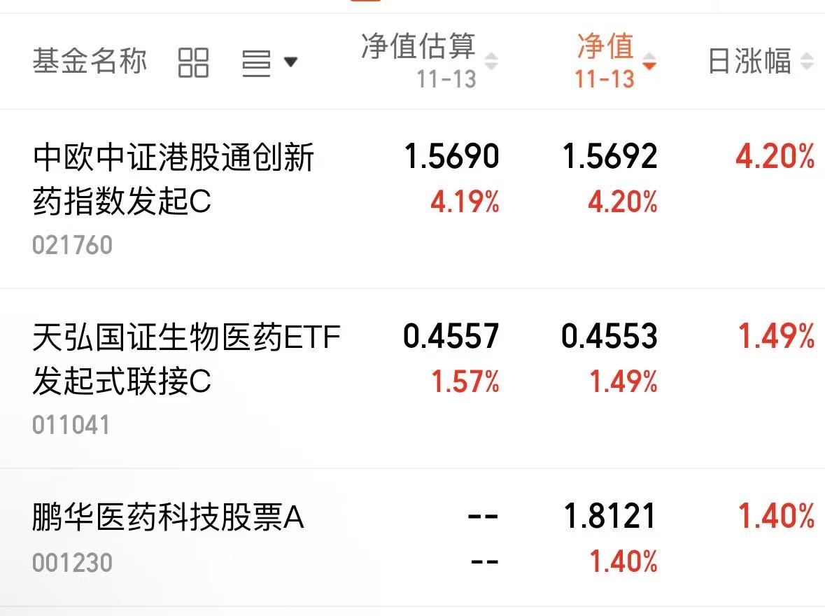 创新药昨天涨,今天继续涨,而且还是放量大涨!这种基本面还有业绩都十分健康的板块,调整是为了洗出筹码,更好的上涨。$中欧中证港股通创新药指数发起C(OTCFUND|021760)$涨4.2%,港药涨幅大