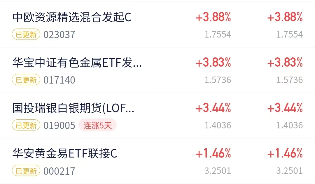 $华宝中证有色金属ETF发起式联接A(OTCFUND|017140)$今天收涨3.83%。