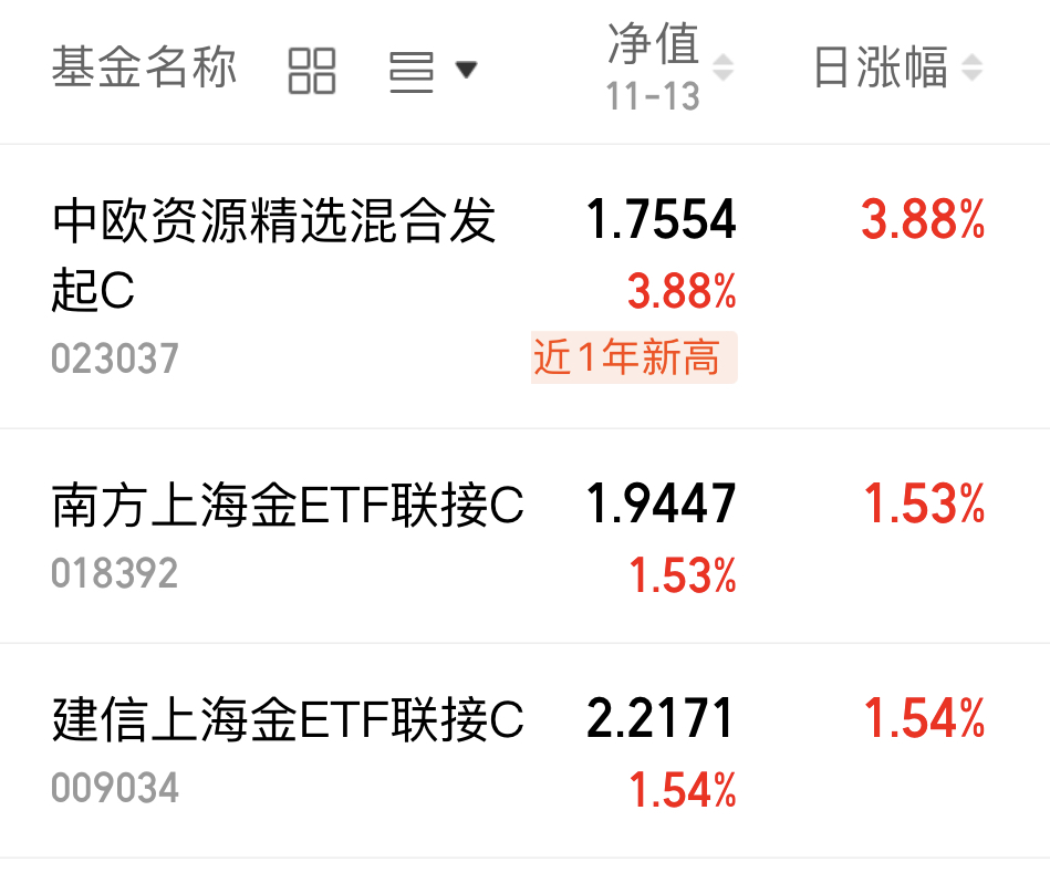 今日贵金属资源类板块强势上涨,黄金、白银领涨,美联储降息预期叠加地缘避险需求催化。资金踊跃流入,带动基金上涨,一起来看最新净值情况。
