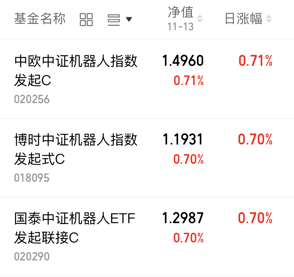 $中欧中证机器人指数发起C(OTCFUND|020256)$今晚上涨0.71%