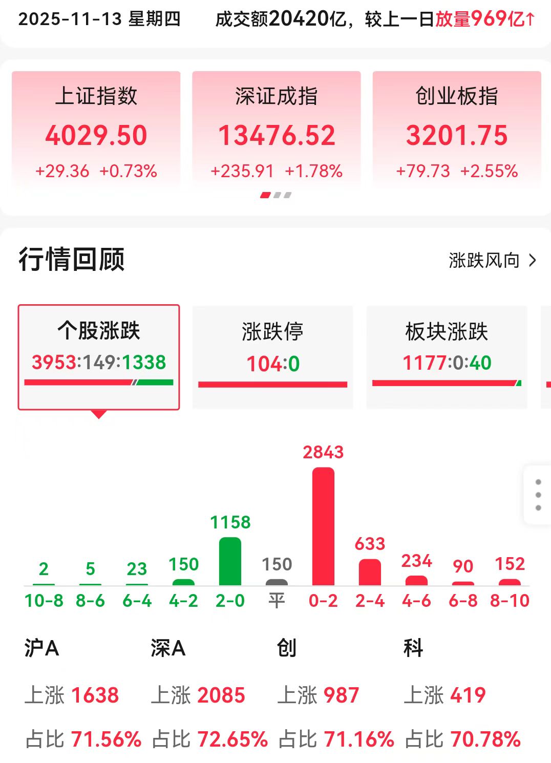 今天大A又双叒叕刷新纪录:沪指直接顶到4029点,十年新高说破就破!创业板更争气,一根2.55%的中阳线把连日的苦瓜脸给打粉了。两市成交2.04万亿,比昨天多掏了970亿,,妥妥的“放量狂欢”。港股那边也凑热闹,恒指小涨0.56%,阿里、中芯国际齐抬头,可惜南向资金反手卖了35亿,外资“薅完就跑”的老毛病又犯了。