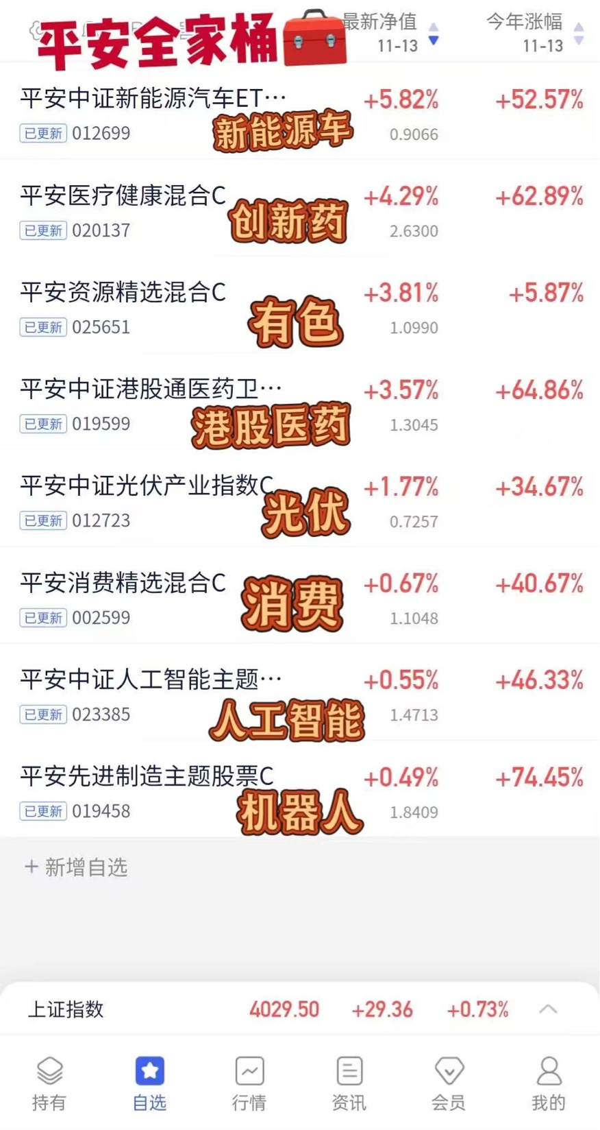 哇塞,平安全家桶净值更新情况来了,一个比一个涨的猛啊!
