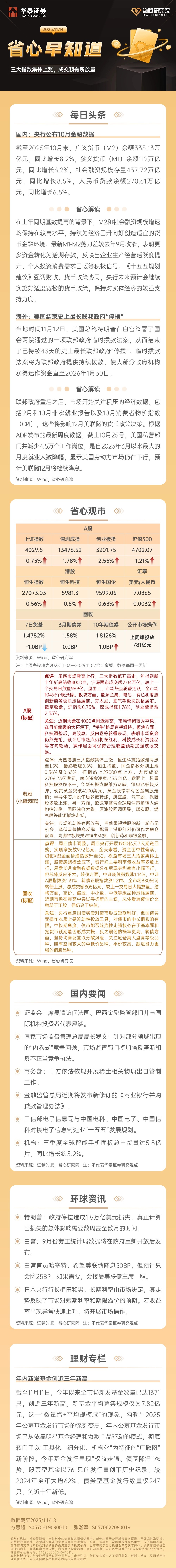 1114省心早知道——三大指数集体上涨,成交额有所放量