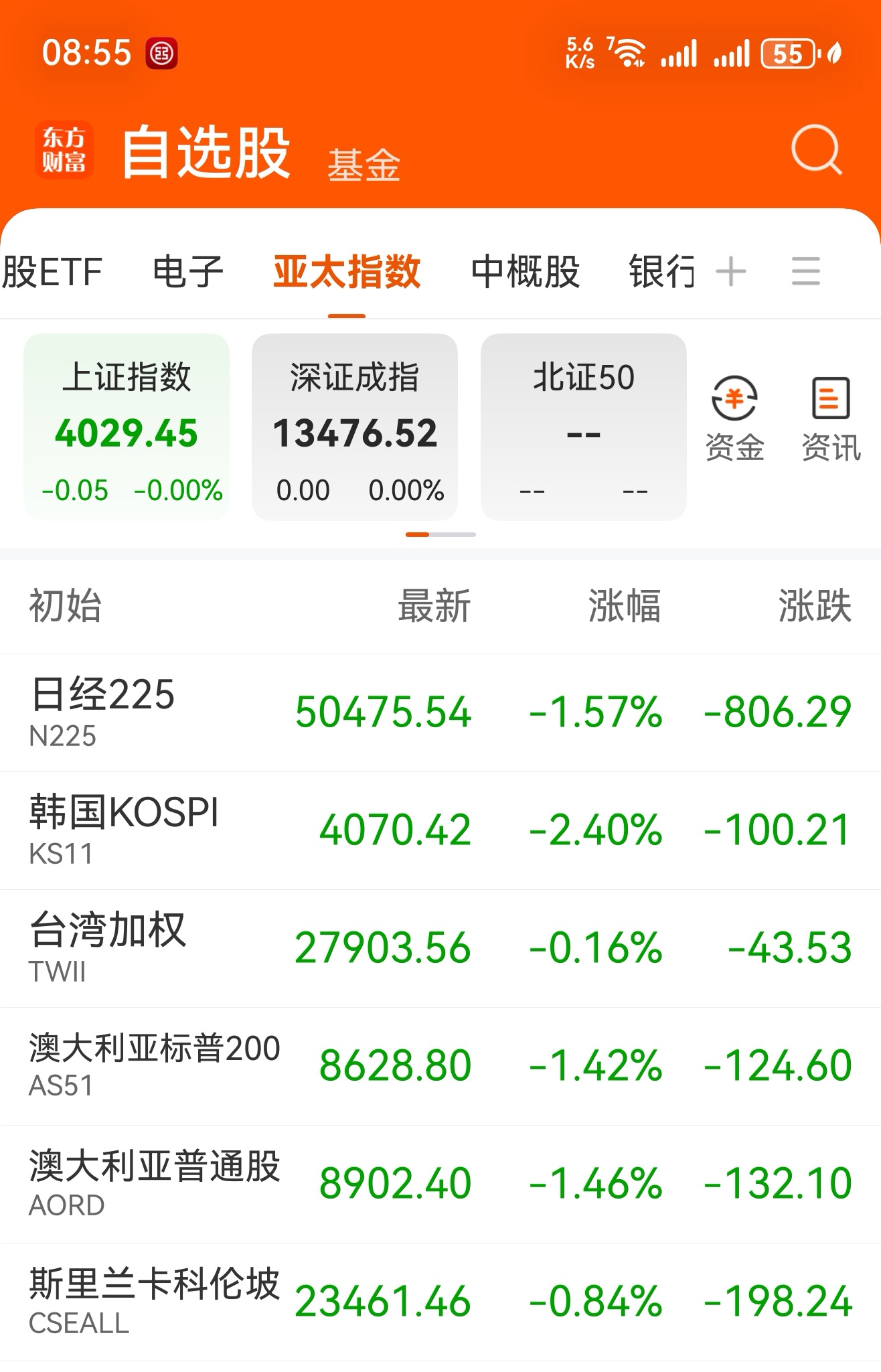 在今天上午8点多的时候,观察亚太多国股市,因欧美股市在昨天大跌的缘故。