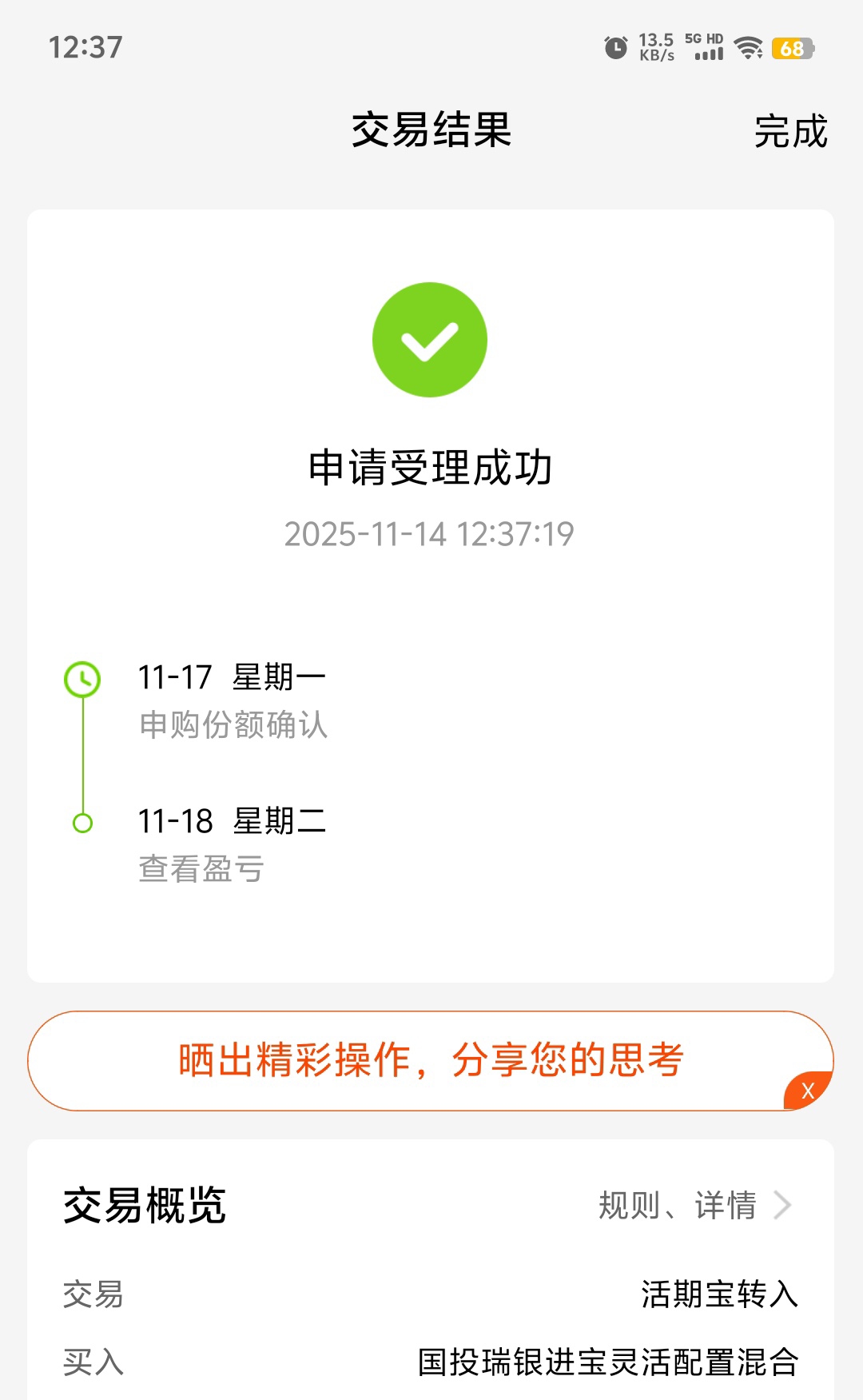 涨了4个点有点厉害啊,国投的平台好像免申购费