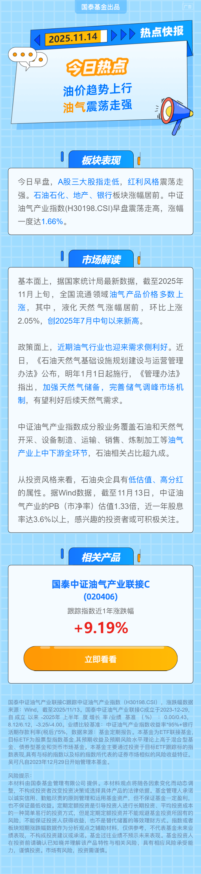 $国泰中证油气产业ETF发起联接A(OTCFUND|020405)$$国泰中证油气产业ETF发起联接C(OTCFUND|020406)$