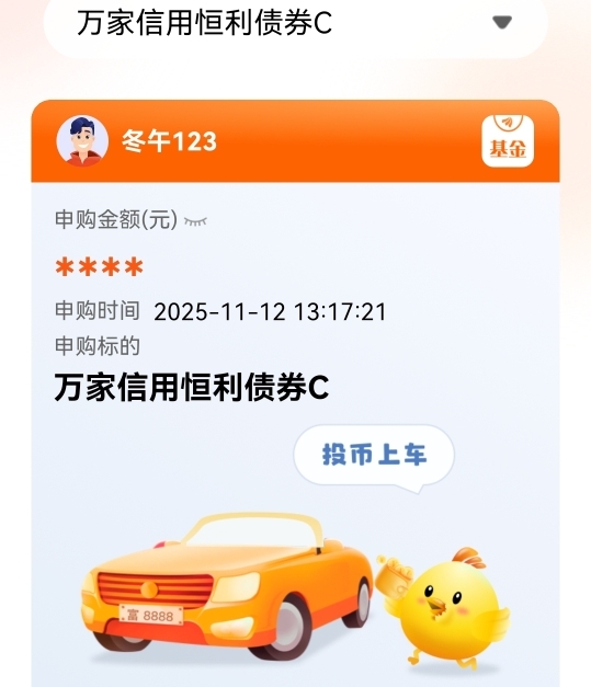 高级信用债风险小,比较稳,我最近上车万家的,观察了一段时间还不错$万家信用恒利债券C$