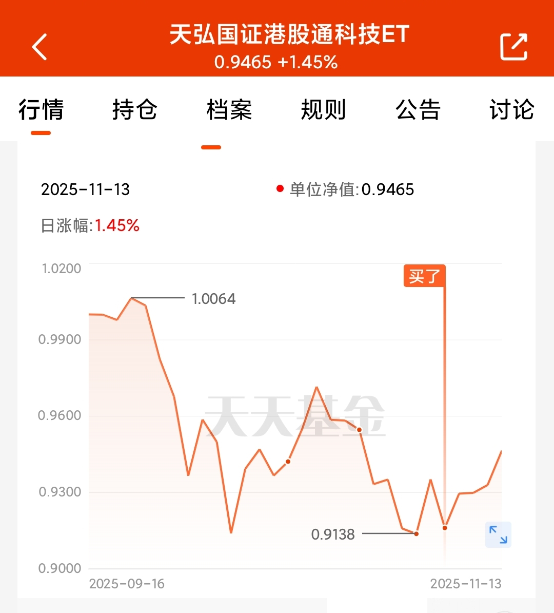 天天.买入3000元 $天弘国证港股通科技ETF联接C(OTCFUND|024886)$