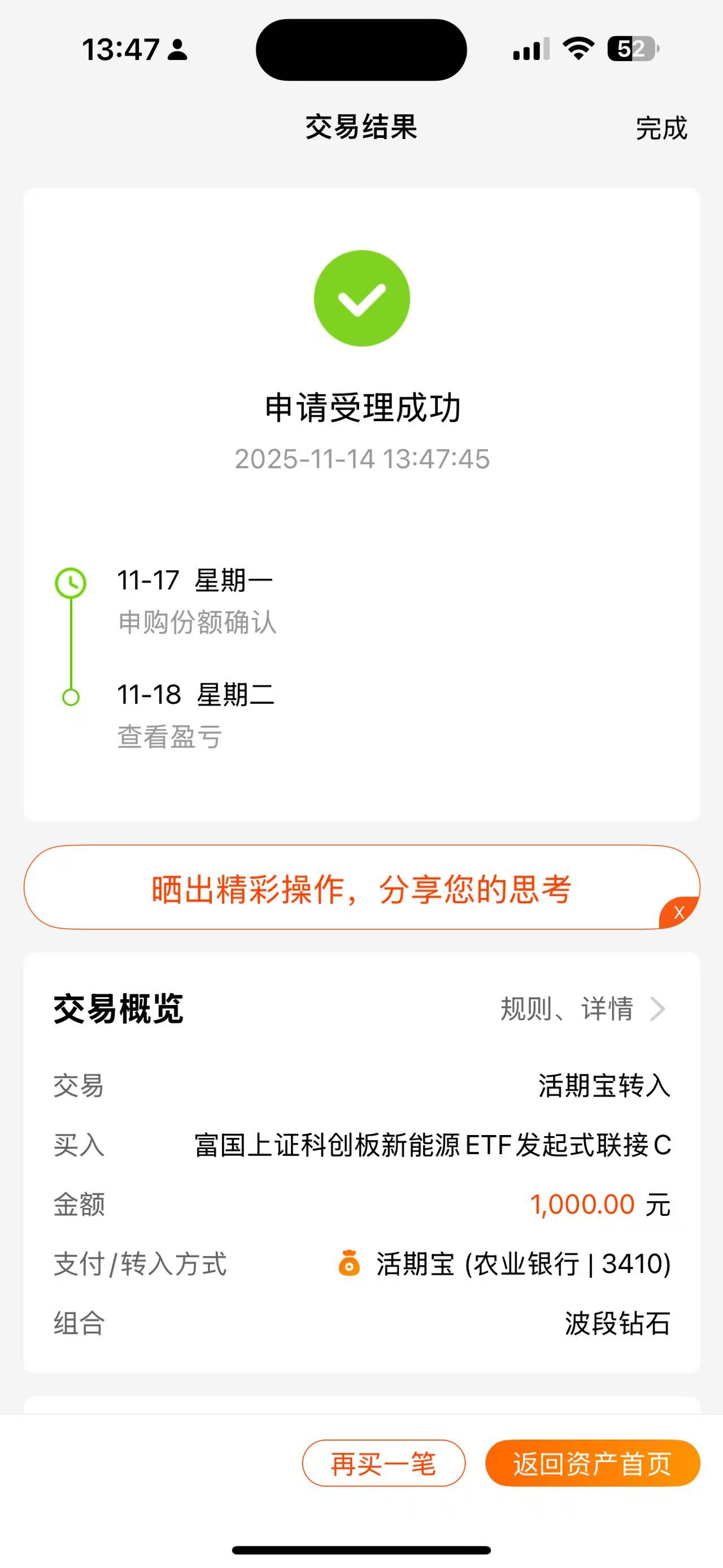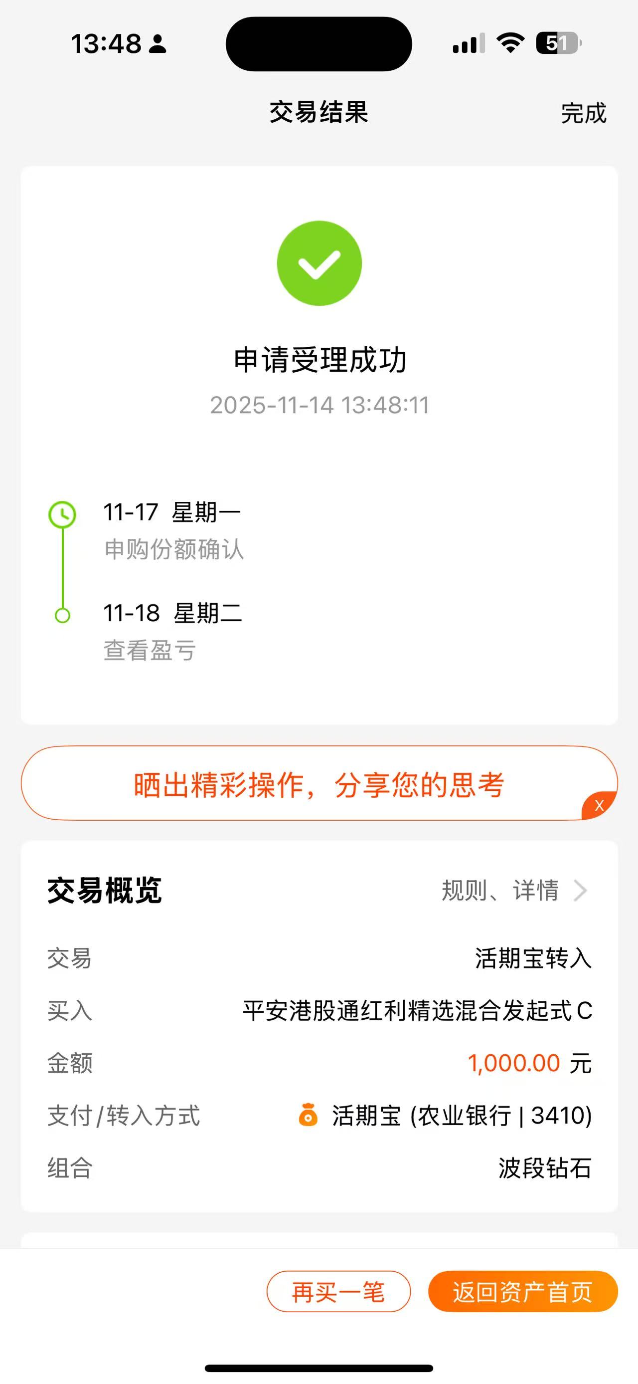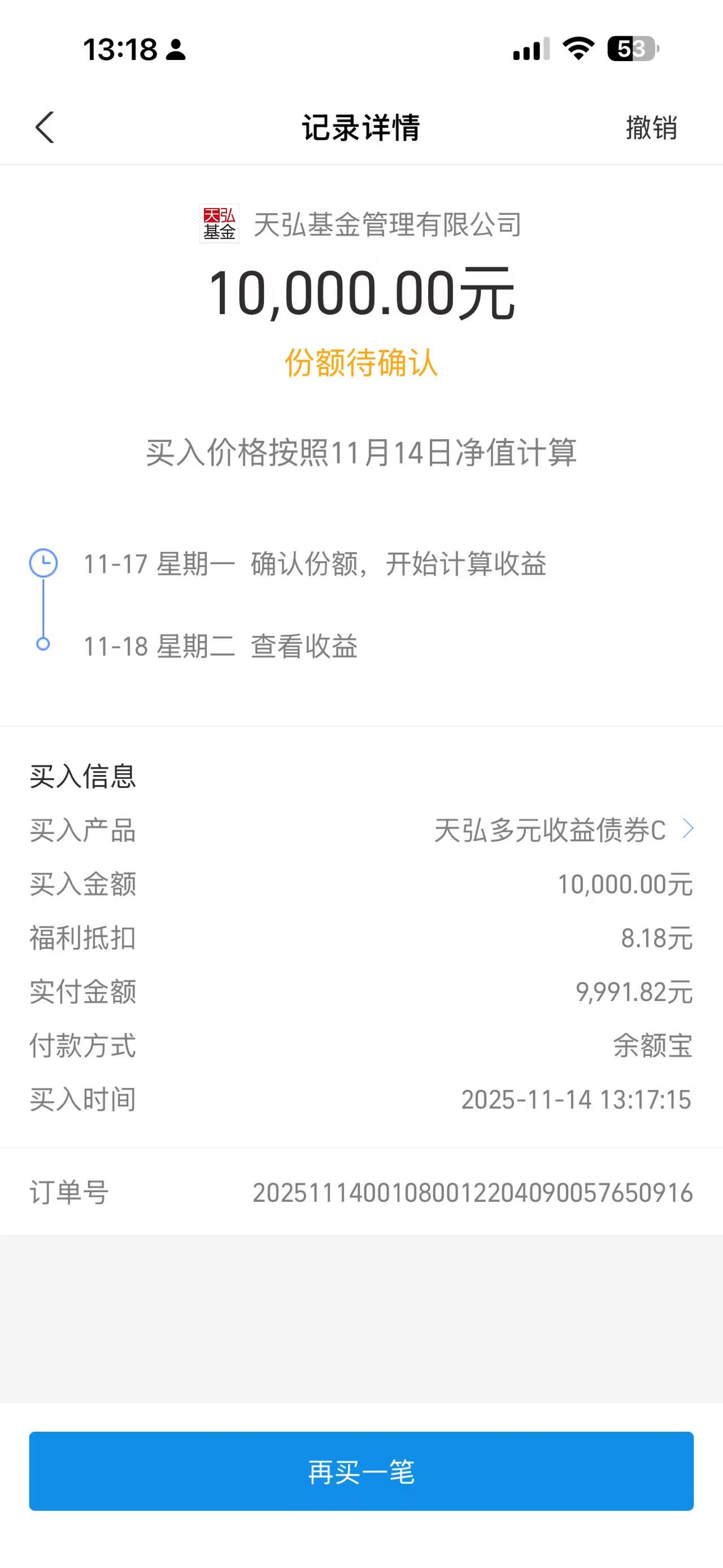 操作:大额买入10000元$天弘多元收益债券C(OTCFUND|010119)$基金,这是一只固守+基金,适合新手投资,也适合像我这样的老司基用来作为投资组合的压舱石,因为固守+有大量的债券资产作为安全垫,有少部分的股票资产博取更高的超额收益,而这只基金股票的部分主要投资于银行、红利等高股息的红利资产,在当下的低利率时代,拿着银行和红利吃股息,收益性价比会更高。