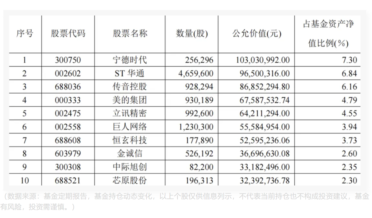从三季度报告披露的前十大重仓股来看,分散在A股和港股中的电力设备、TMT、中游制造等不同行业,且持仓占比均低于8%,符合其均衡性的投资风格,分散的行业配置可以更好地抵御市场本身的波动,力争组合表现更稳健。