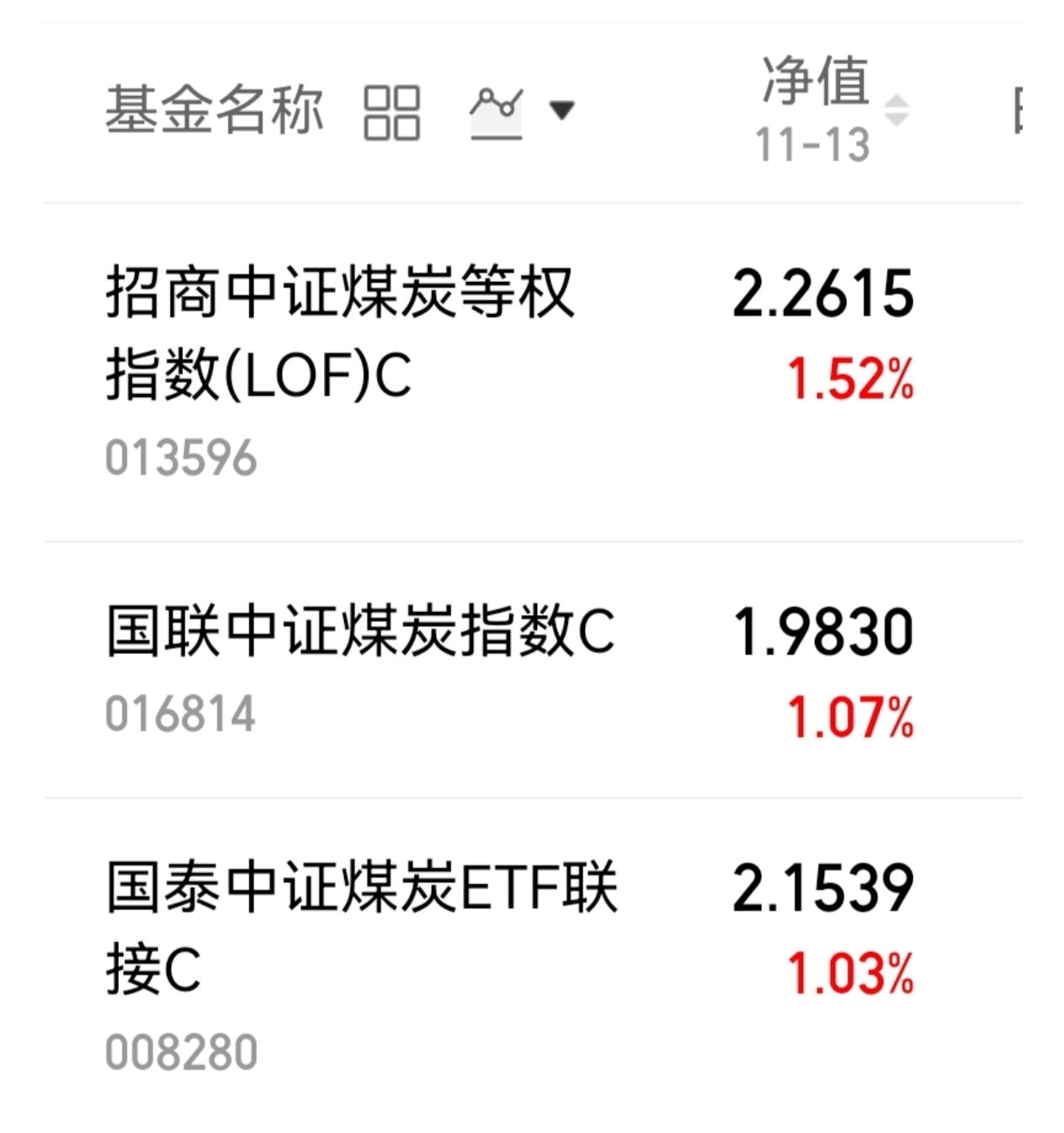 最近煤炭板块走得挺稳,看来市场资金确实在关注这个方向。我注意到招商中证煤炭等权指数(LOF)C昨天表现不错,涨了1.52%。另外两只煤炭基金也都有上涨,国联中证煤炭指数C涨了1.07%,国泰中证煤炭ETF联接C也有1.03%的涨幅。