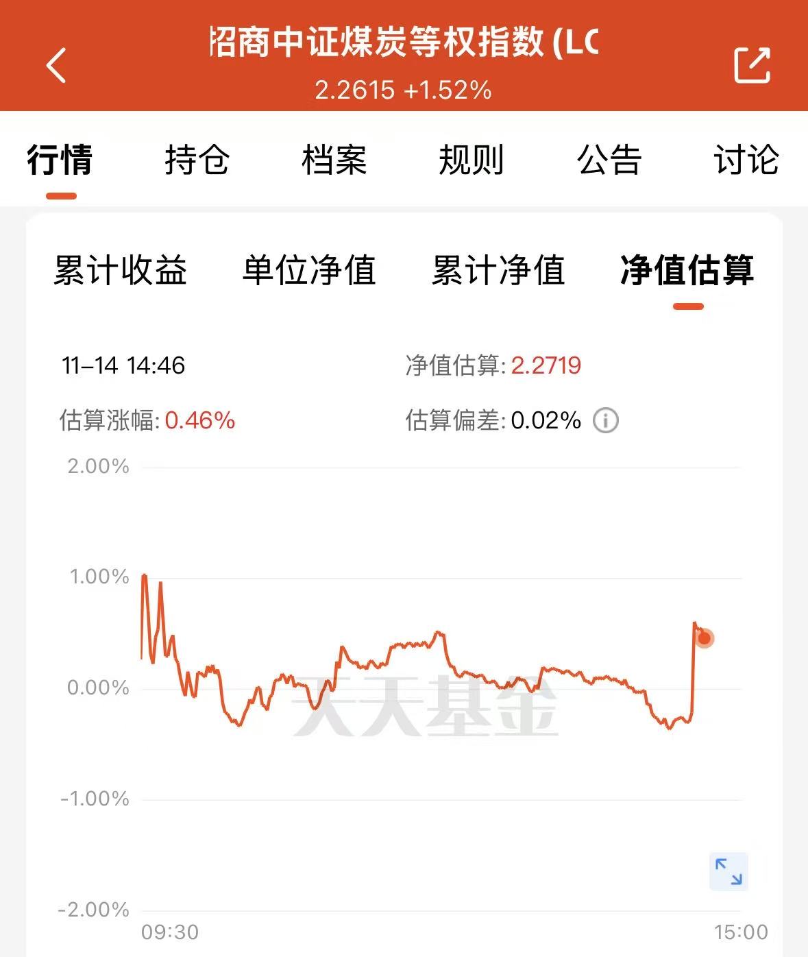 午后科技跳水,真是给我跌麻了!看一眼煤炭,一根小阳线来了啊这是!$招商中证煤炭等权指数(LOF)C(OTCFUND|013596)$估值+0.46%,嘎嘎红宝子们!现在冬季供暖刚需托底价格,煤化工技术突破,新产业打开增长空间。煤炭股现在既有政策护盘,又有业绩支撑,继续看好!