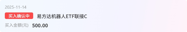 机器人板块:个人认为目前板块日线下方仅剩120日线,仍在调整期,没形成明确上涨趋势,在目前避险环境下,资金关注度可能降低。但机器人板块跌得够久了,今天趁市场情绪冰点,果断低吸 500 块$易方达机器人ETF联接C$ !小仓位试错不慌,机器人是长期赛道,迟早轮动到,先占个坑,后续跌了再补!