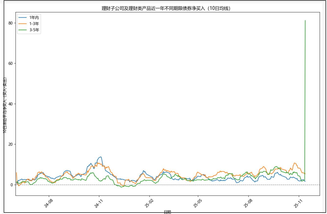 其二,是昨天的现券数据显示,昨天,理财狂买了接近800亿的3-5年信用债,而基金则净卖出接近-800亿,感觉是不是出了什么bug,有懂的小伙伴,可以留言。
