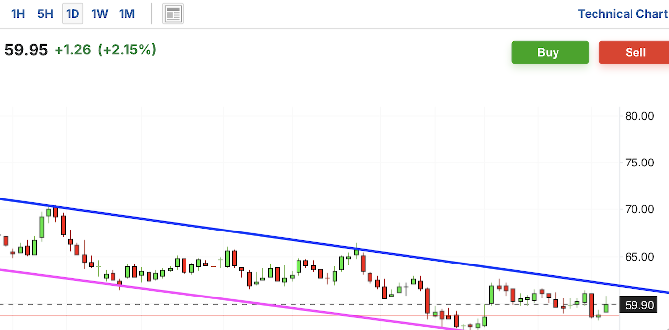 原油近期进入下行通道,最近受阻于通道压力位,并沿着通道震荡下行。油气近期在中间位置横盘箱体震荡,这几日处于盘整状态。