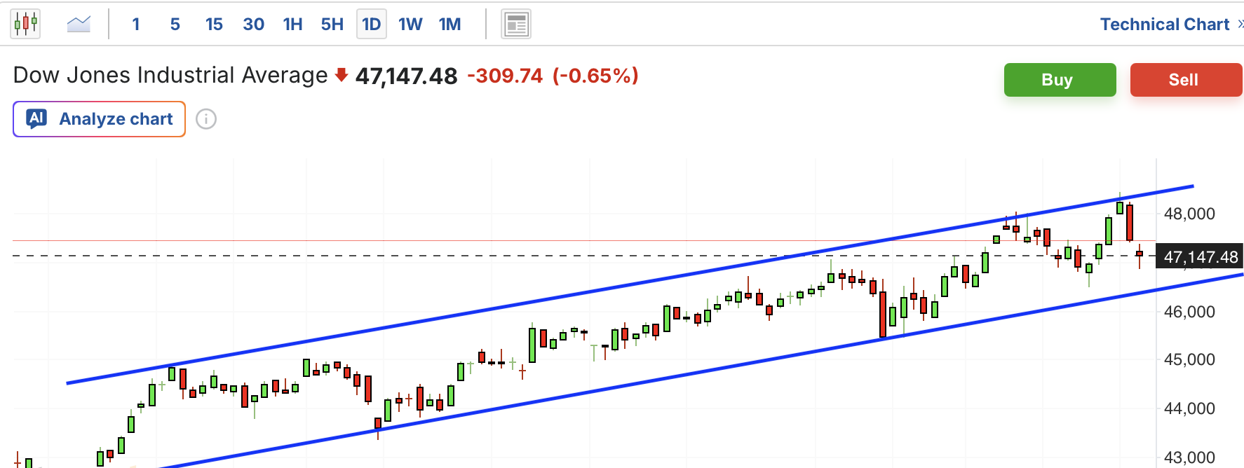 周五,美股三大指数涨跌不一。近期三大指数进入上升通道,纳指和标普500本周大幅下跌,已经跌破通道支撑位和中期上涨趋势线,如果无法很快反弹回去,那么可能进入回调阶段。
