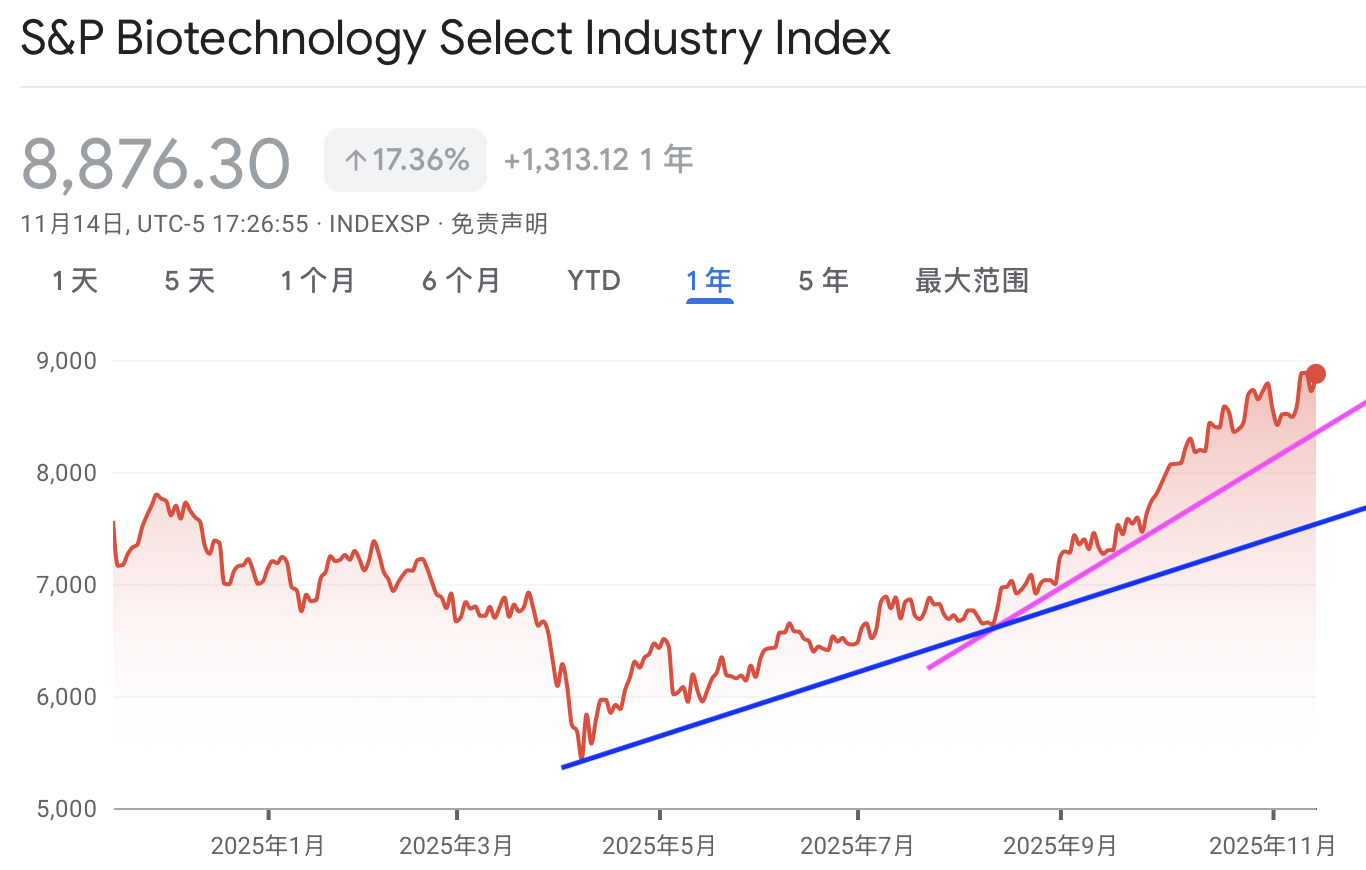 标普房地产近期一直在中间位置箱体横盘震荡,最近守住支撑位,这几日在支撑位附近徘徊,继续盘整中。标普生物近期有一波较大行情,最近大幅飙升形成超买,这几日似乎陷入盘整。