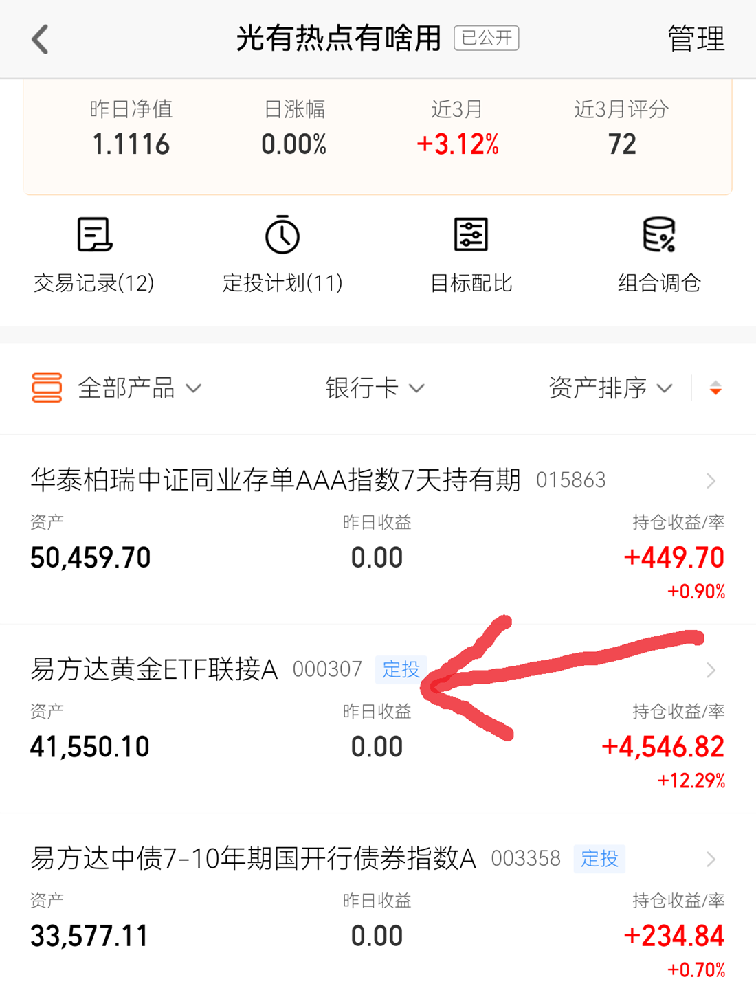 这也就是为什么我们最近总说短线交易难度加大,因为像隔壁邻国抽风说胡话(从而形成短期刺激)这种事情是基本没法预测的。还不如稳妥一点,明确中期趋势,仓位没够就逢跌收集筹码,仓位够了就躺平等5000美元。实盘里可以看到,黄金已经是除同业存单之外的第一大重仓单基,短线太难搓,我们选择定投安心等待跨年行情。