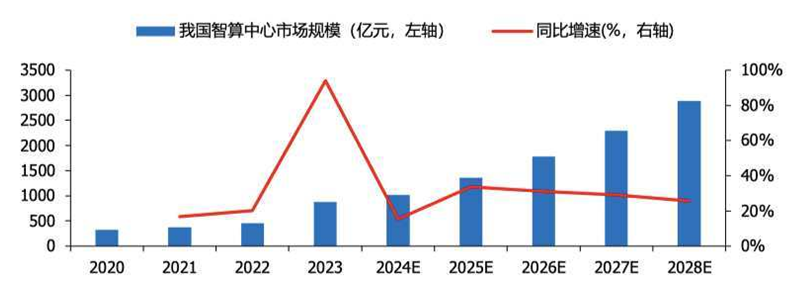数据来源:《中国智算中心产业发展白皮书(2024年)》、长城证券《海内外算力需求持续火热,我国大模型及芯片进展不断,持续看好算力产业链投资机会》,2025.9.17