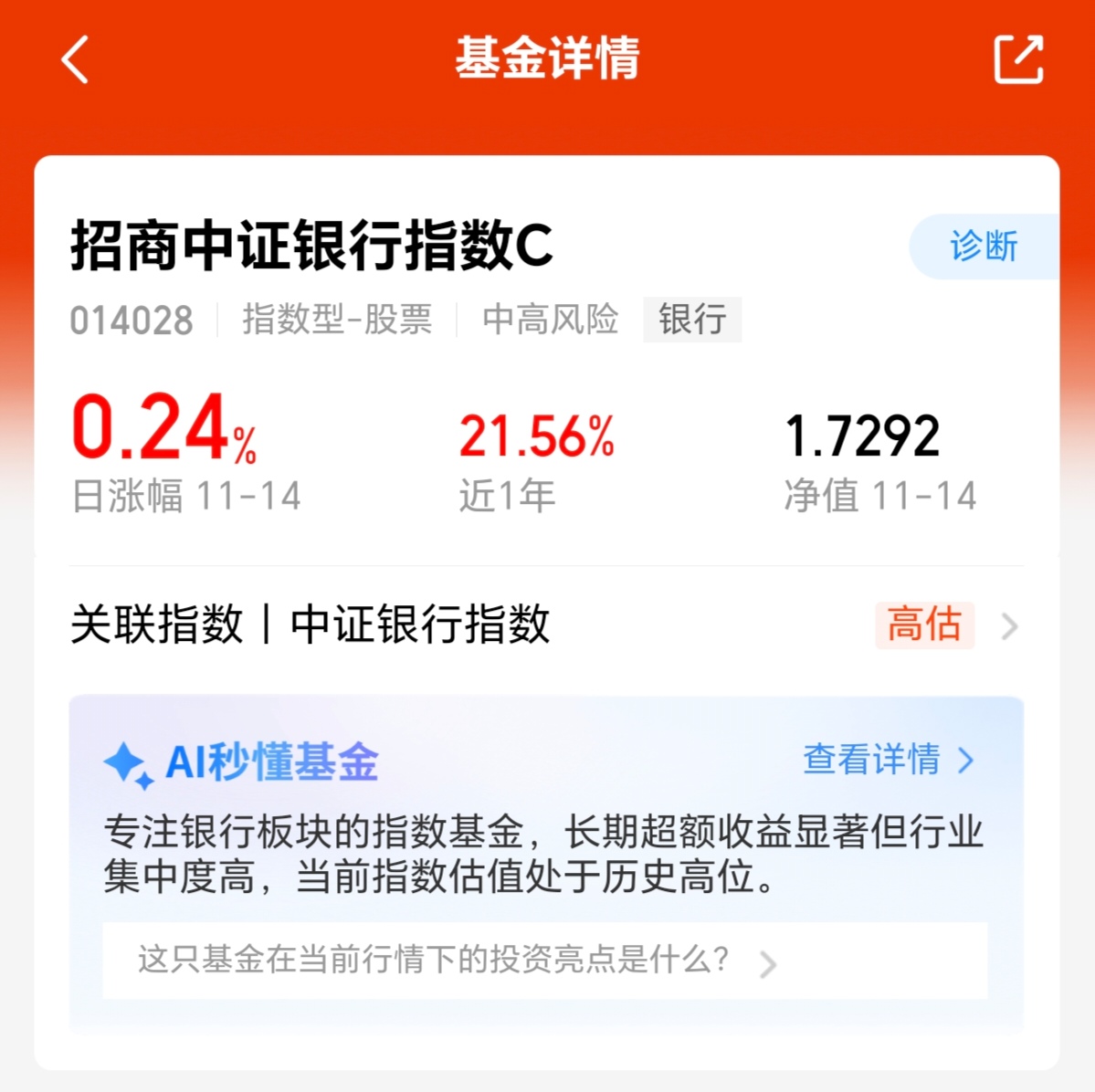 今日大盘行情再次震荡分化,而资金明显会更青睐防御板块,其中银行板块的高股息特性,在当下市场中展现了独特的优势,以$招商中证银行指数C(OTCFUND|014028)$来说,持仓紧密跟踪银行板块,能够精准把握银行投资机遇,同时从股息率的角度来看,A股银行比港股银行现阶段更有吸引力,我也准备定投起来,作为安心底仓!