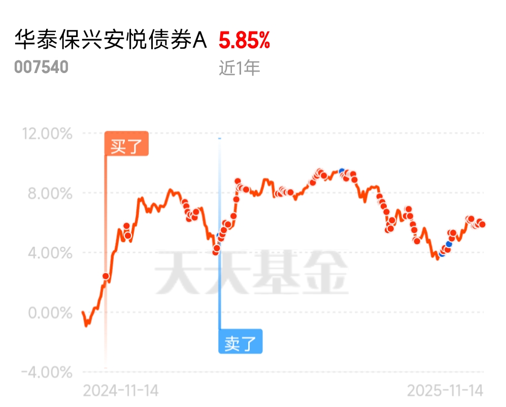 看债券的走势就是长期震荡的向上中,闲钱配置也是不错的!$华泰保兴安悦债券A$