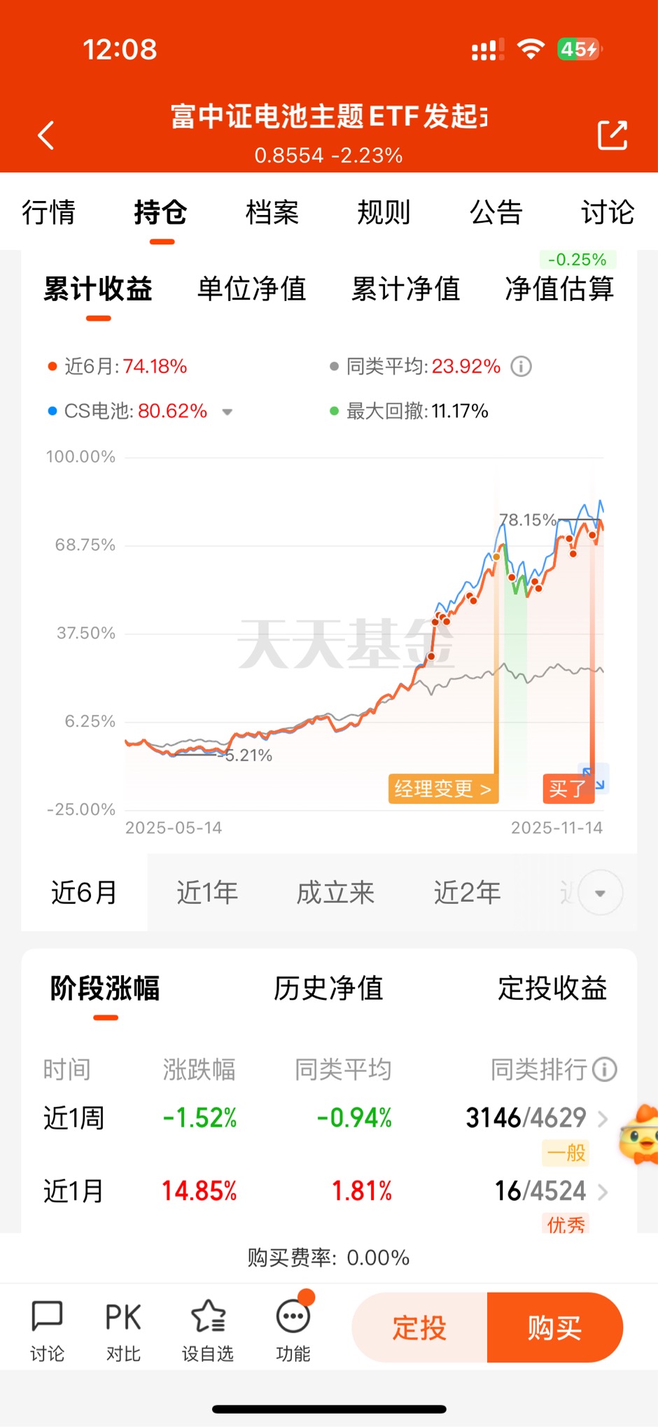 #锂电池行业拐点确立!锂电大周期来了?# $汇添富中证电池主题ETF发起式联接C$ 成分股很集中,都是宁德时代、阳光电源这些龙头,锐度高,涨起来猛。现在的电池就像前期的芯片,行情刚启动,储能和固态电池需求都起来了,板块基本面在好转,可以多看看。