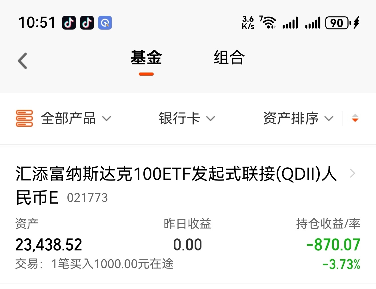 在今天,观察目前持有的剩余某个美股纳斯达克100指数qdll基金,在最近这多天美