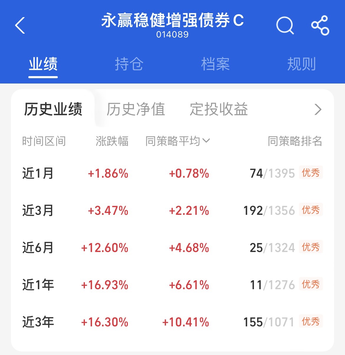 #锂电池行业拐点确立!锂电大周期来了?# 宝子们,给你们唠唠小赢家的稳健增强~这基金近一年有186个蛋呢!真香哦,它走的是固收+路线,就像给上了个稳稳的保险带。整体表现稳中有升,这种幸福谁懂我还挺值得去了解了解的~
