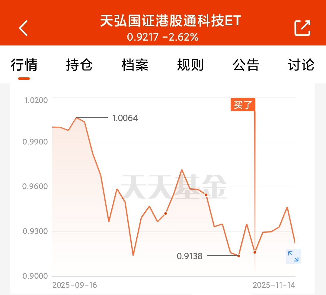 天天.买入3000元$天弘国证港股通科技ETF联接C(OTCFUND|024886)$