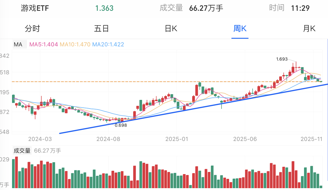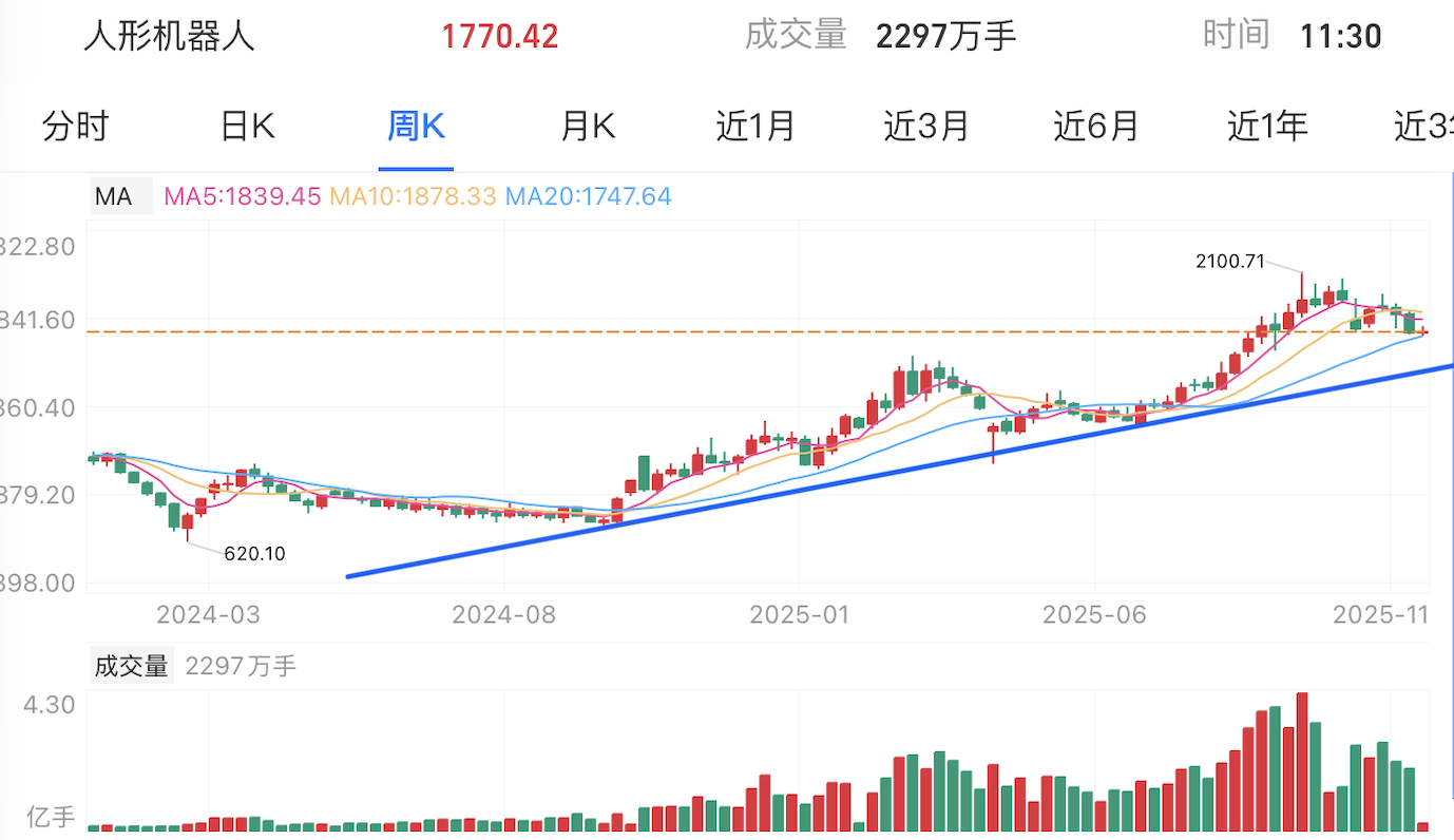 人形机器人、游戏此前有一波较大行情,后力竭盘整,这几日跌破短期支撑,趋势下行,距离中长期上涨趋势线仍有下行空间。