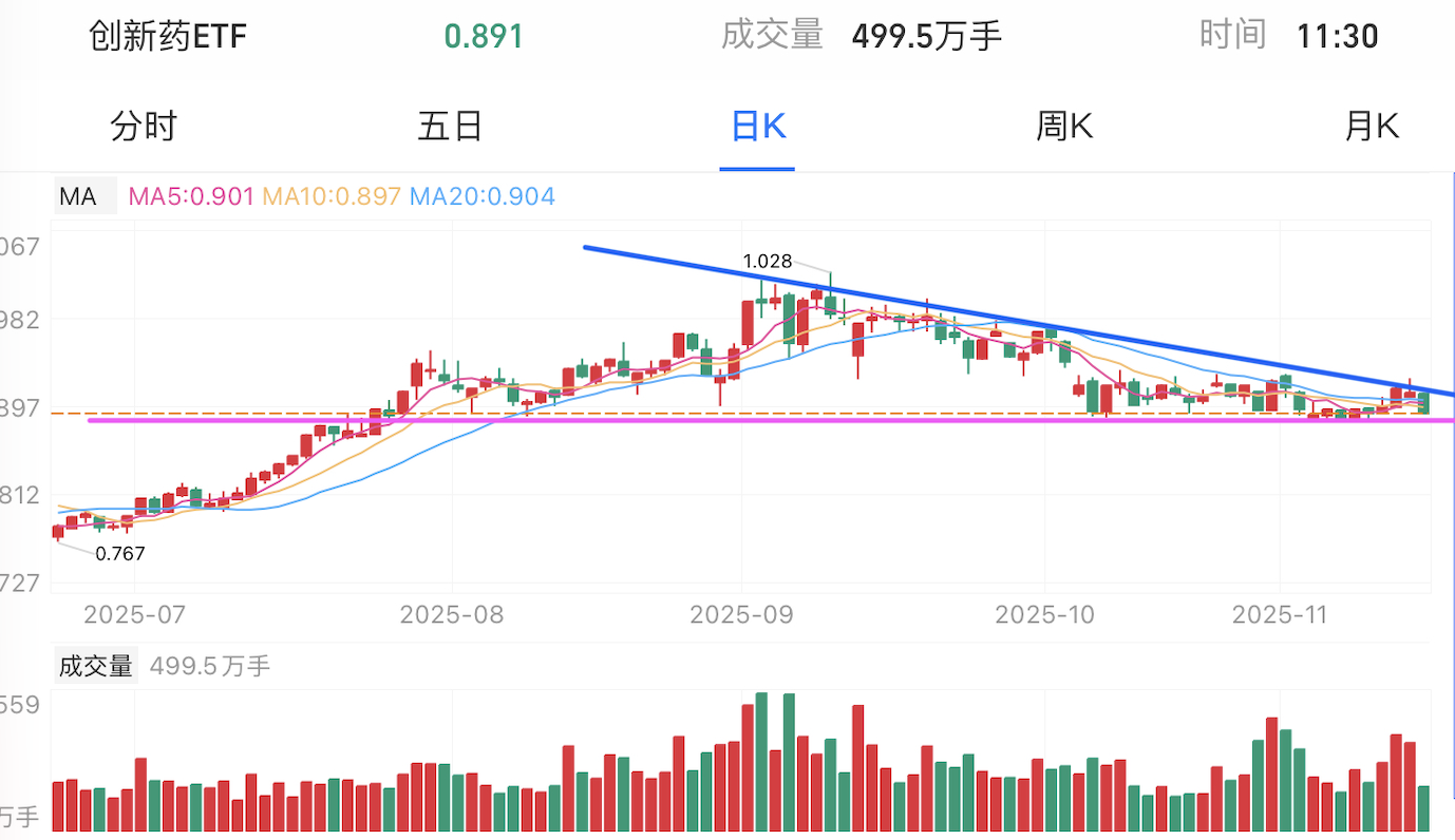 创新药和港股创新药此前有一波较大行情,后力竭回落,跌破上涨趋势线。最近在下行途中止跌反弹,有回升迹象,目前还没有突破压力位,突破则新行情开启。