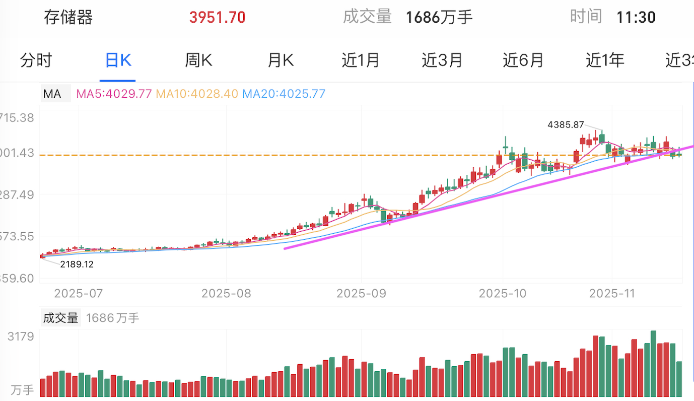 存储芯片、能源金属近期有一波较大行情,最近陷入盘整,存储芯片这两日跌破关键上涨趋势线,如果再跌破前低支撑位,那么此次行情可能结束。能源金属今日飙升,似乎突破压力位,不确定是否假突破。本人今日减去存储芯片1/2仓位,卖出能源金属够7日仓位。非投资建议。