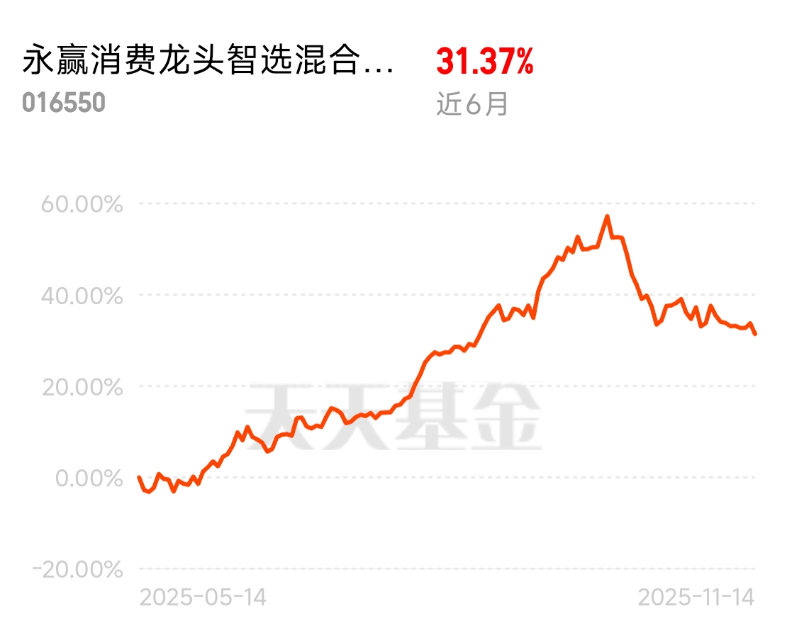 大盘弱势震荡,不少板块让人担心,不过还是要看长期才能稳住收益啦,这个$永赢消费龙头智选混合C$近半年已经累计涨31个点了,上升空间还有很大,现在游戏可是火爆赛道,在传媒游戏赛道的精准聚焦下,这个还是具备中长期稳健增值潜力,很看好这个板块$永赢消费龙头智选混合发起C$