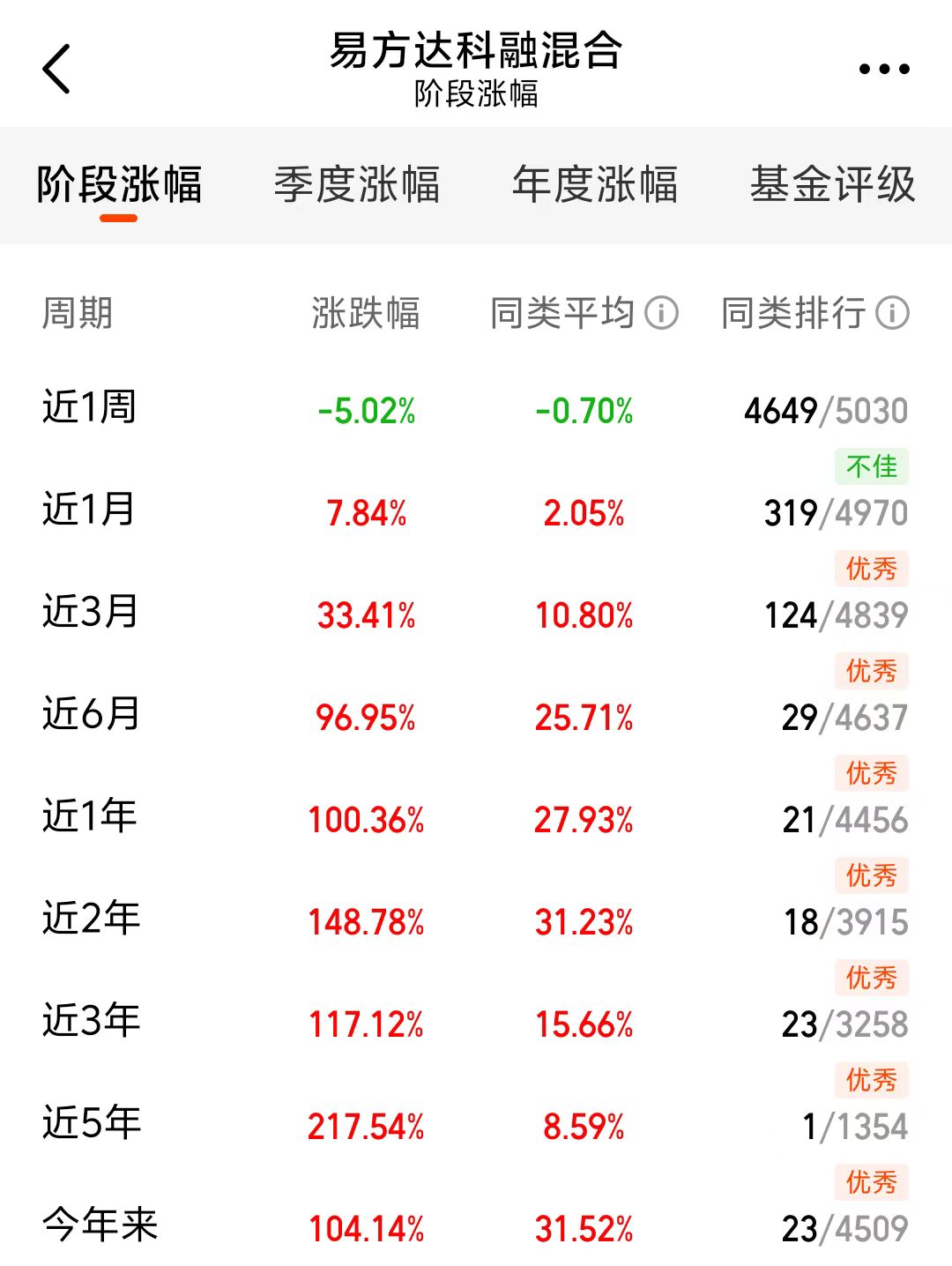 大盘今天震荡调整,近期市场波动比较大,各大板块轮动速度很快,$易方达科融混合(OTCFUND|006533)$持仓聚焦科技赛道,还有新能源和军工等板块,轮动配置,经理调仓能力不错,近六个月涨了96.95%,今年来涨了104.14%,业绩不错,能涨抗跌,持仓比较均衡,看好这个方向,我准备分批布局了!