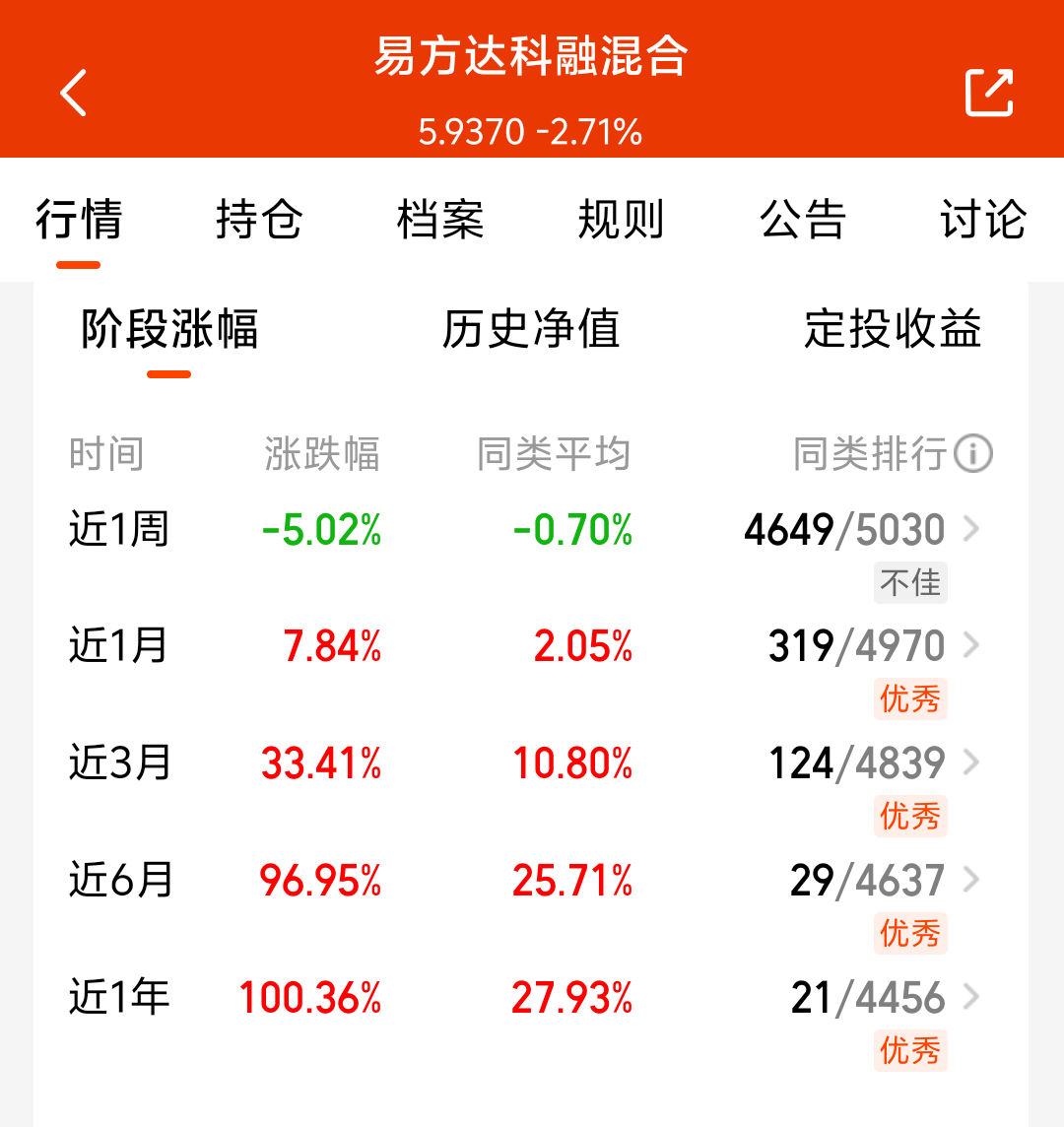 大盘今天震荡调整,科技板块回调了,近期市场波动比较大,各大板块轮动速度很快,我准备多元化投资,易方达科融混合持仓有科技板块,还有新能源和军工等板块,持仓比较均衡,近六个月涨了96.95%,能涨抗跌,看好这个方向,我准备分批加仓了!