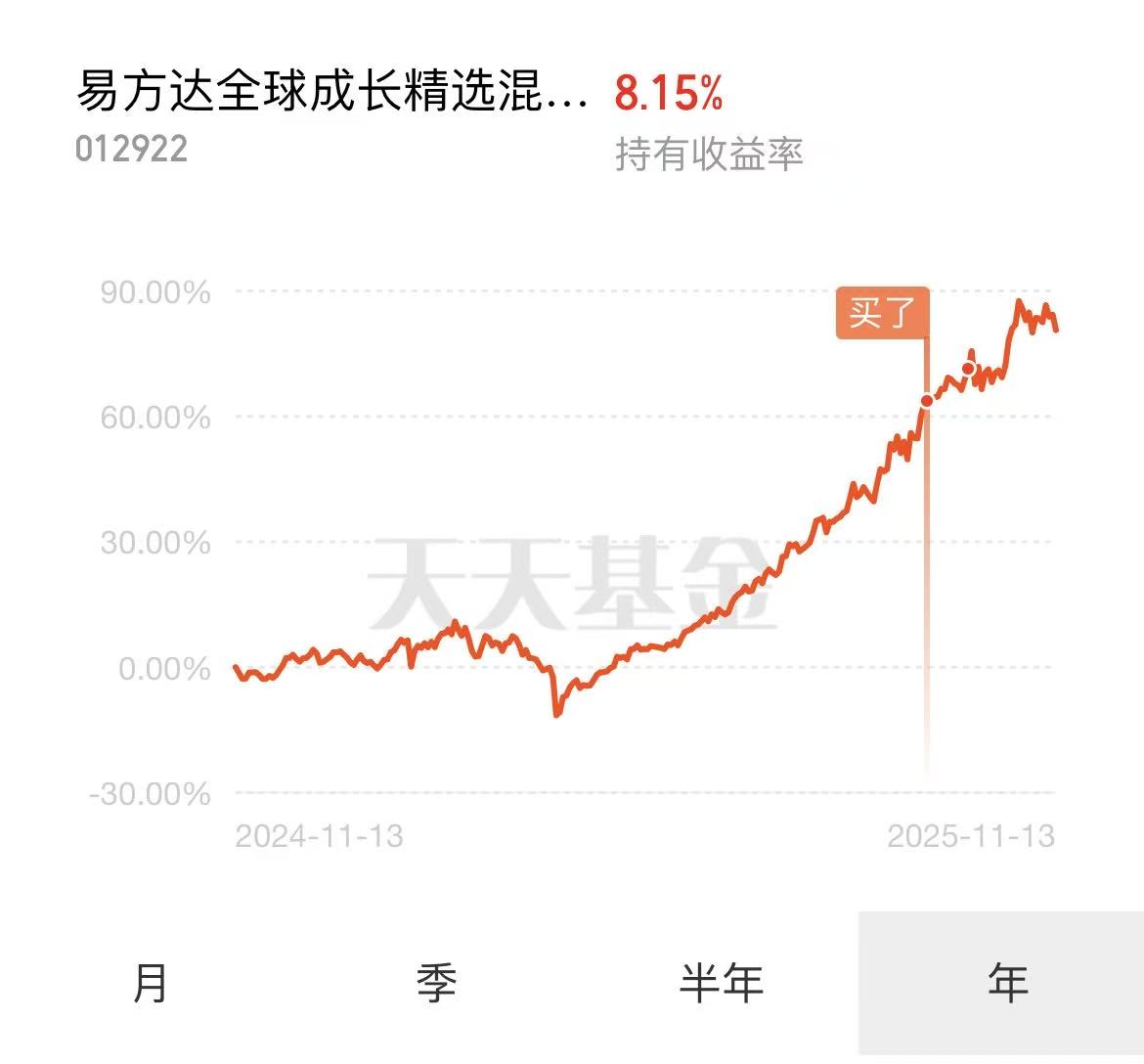 最近大A连续震荡调整,我已经连亏2个月了,太难了,所以说单一的市场还是难操作,因此我也看到全球市场去了,给我体验感不错。$易方达全球成长精选混合(QDII)人民币C(OTCFUND|012922)$是投资A股和美股还有港股三地市场,以科技成长方向为主的,近一年收益率80.62%,逢低布局或者长期持有我感觉都不错呢。#杨德龙:4000点或是新一轮行情的起点# #锂电池行业拐点确立!锂电大周期来了?##三星内存涨价60%!全面涨价潮来袭?#
