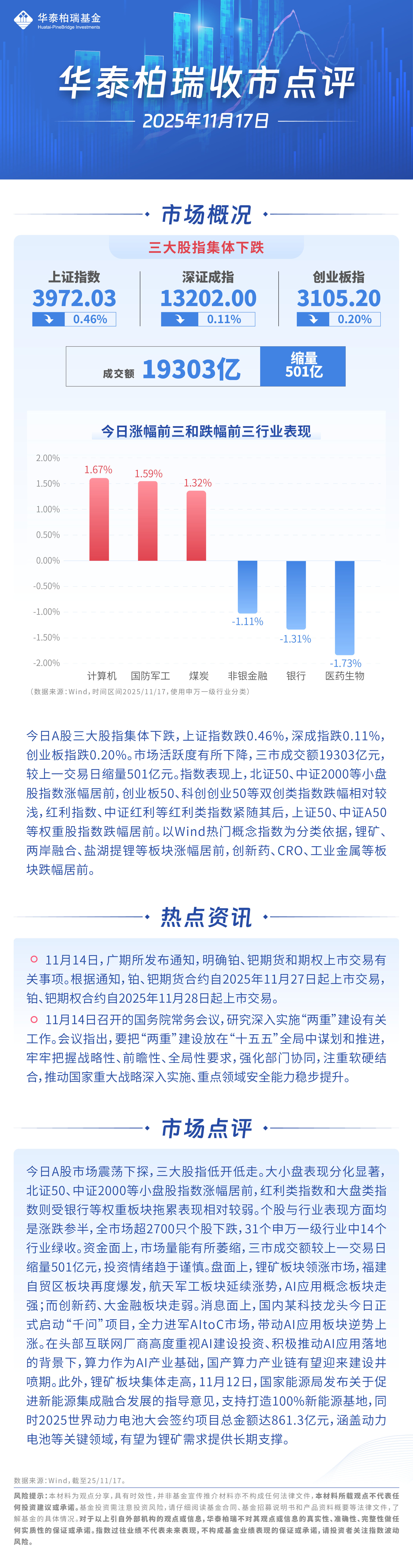 【收市点评】今日A股市场震荡下探,三大股指低开低走