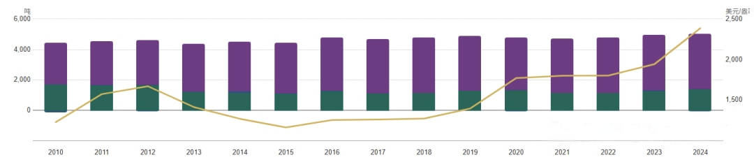 且开采难度极大,所以我们看到黄金的供给是非常稳定的,这里给大家的数据是,每年度黄金的供给量,基本上就在4000-5000吨之间。第二,黄金它几乎不与任何物质发生反应,所以比较方便保存和流通。古埃及的金器经历了数千年时光都能保存完好,正是因为这个特性。正因如此,黄金具备了作为货币的“完美物理属性”。