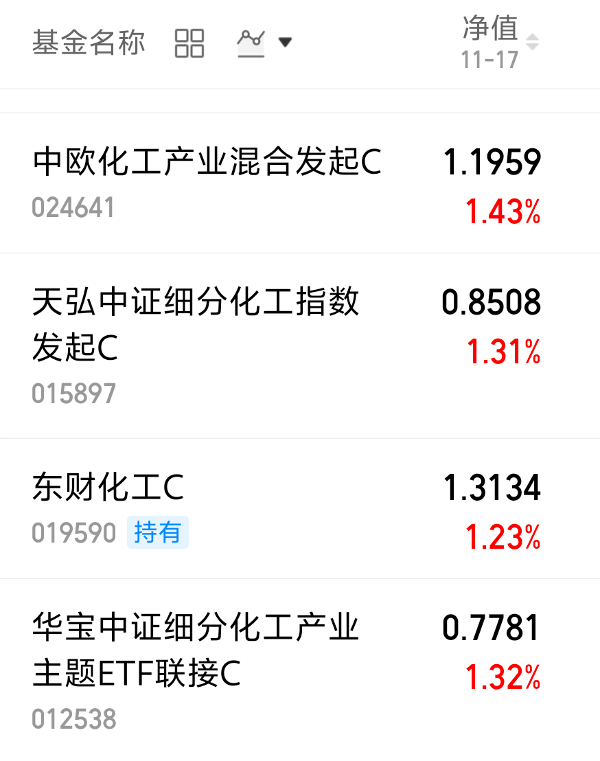 $中欧化工产业混合发起C(OTCFUND|024641)$今天涨了1.43%