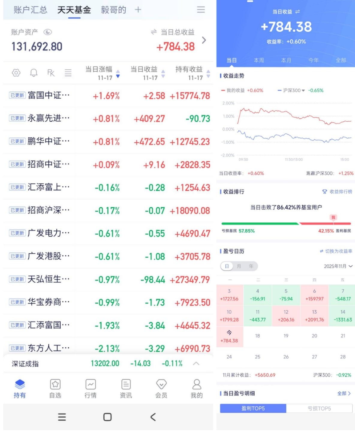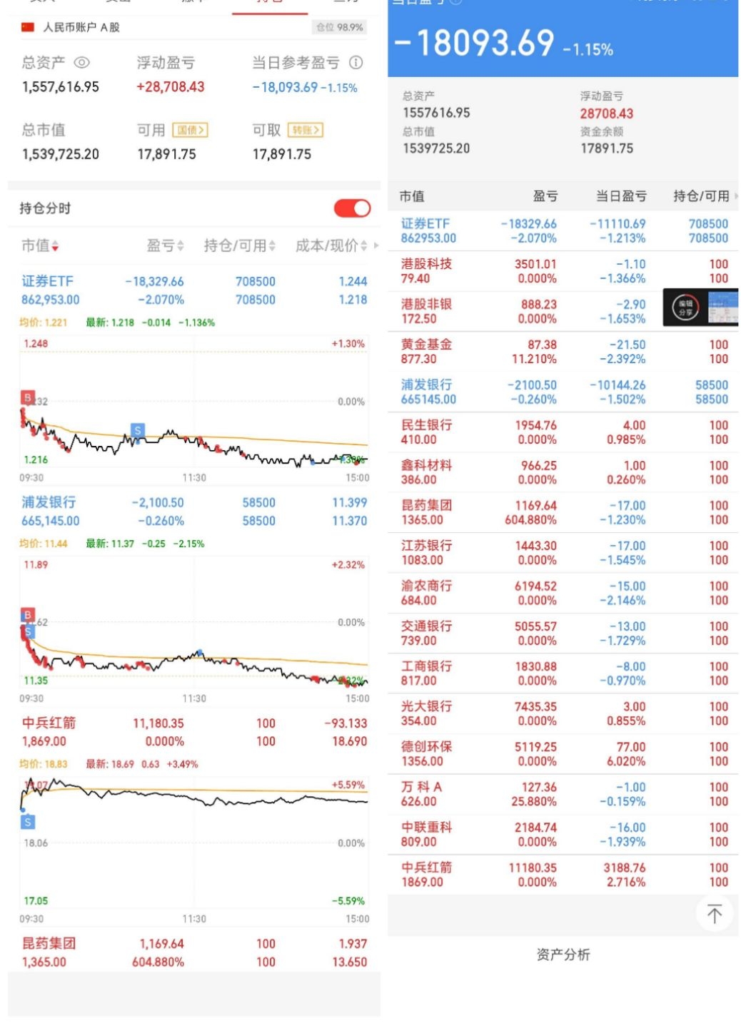 今天的操作和合计盈亏!
