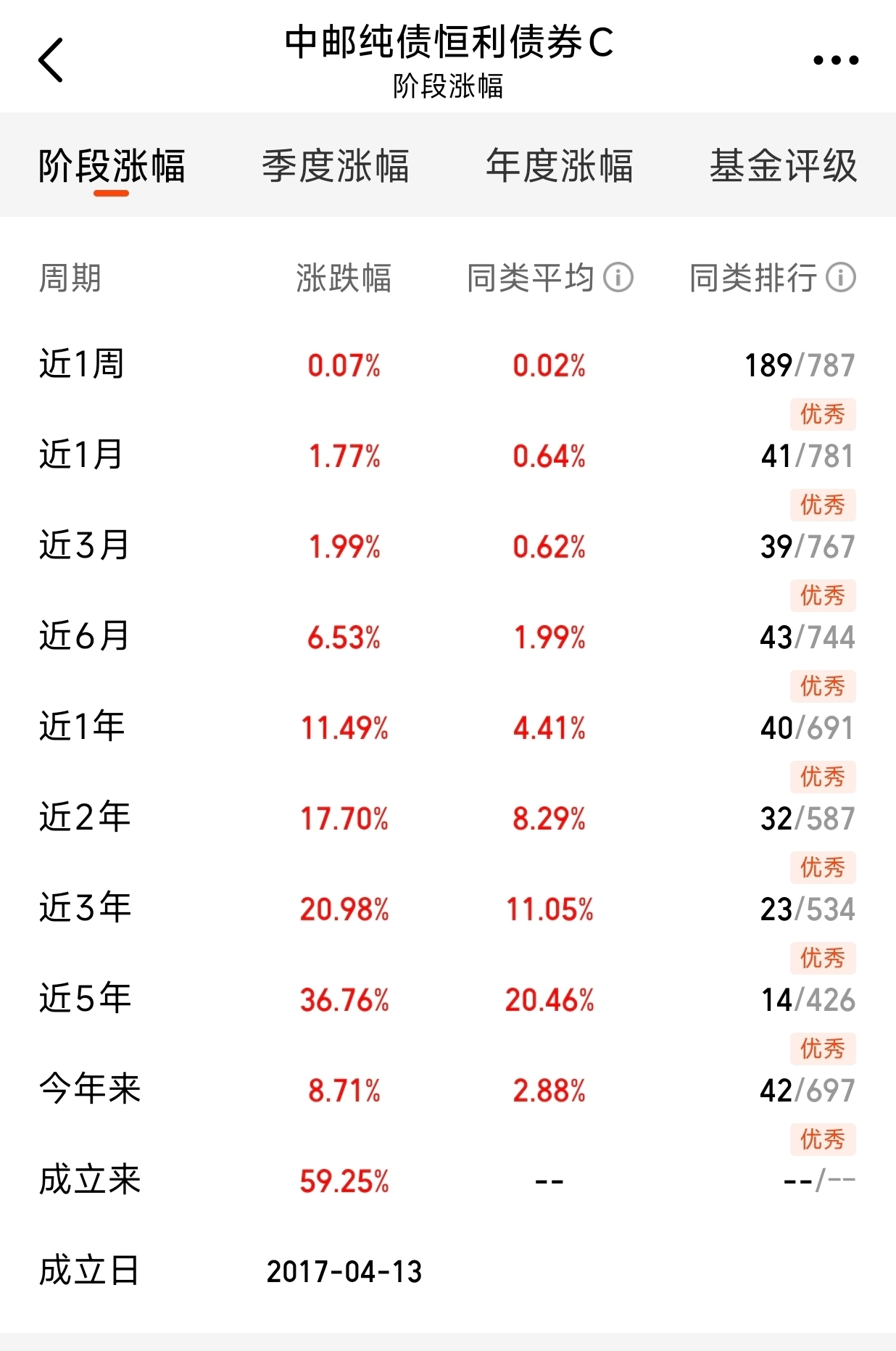 我在#今年买基金赚了多少钱?# 选择了“小赚一笔!收益 0-10%” 今天虽然没有盈利太多吧,但是整体也还可以,主要配置混债盈利不错,$中邮纯债恒利债券C$ 一回暖都是恐龙蛋